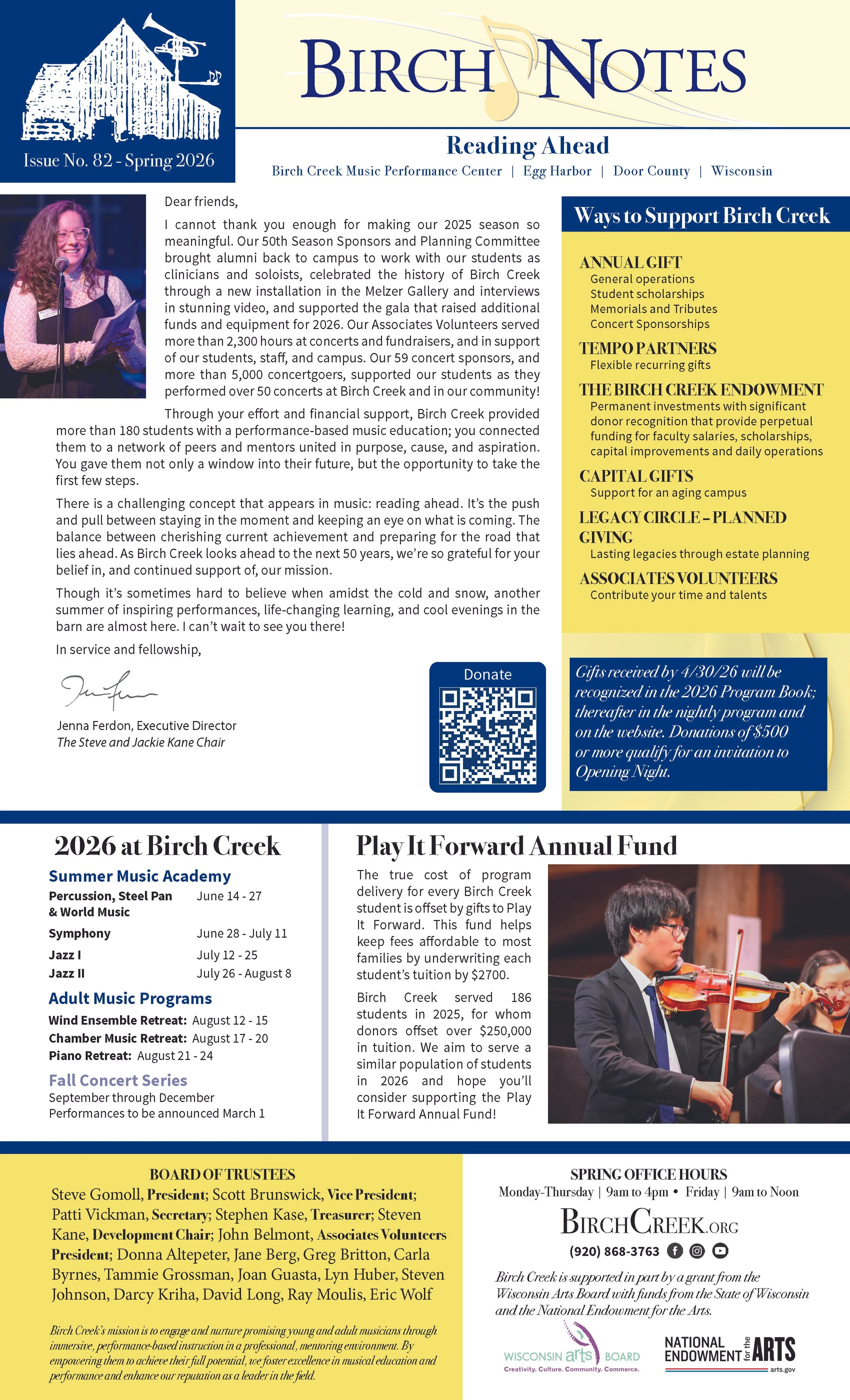Birch Notes is a biannual update on activities and news from the Birch Creek campus, with thanks and acknowledgement to our generous donors.